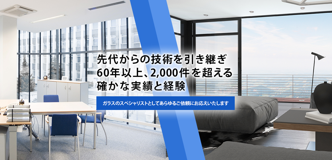 株式会社W.Kガラスは先代から60年以上に渡って、2,000件以上のガラス工事に携わってきました。